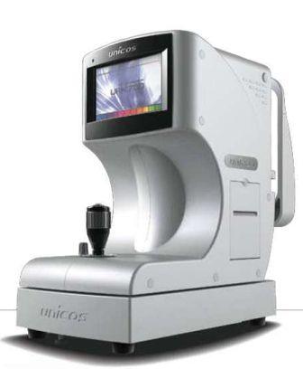 Автоматический Рефракто-Кератометр URK-700 Unicos. Прибор позволяет проводить измерения глаза при минимальном диаметре зрачка 2 мм, а также изменять яркость фиксационной мишени.