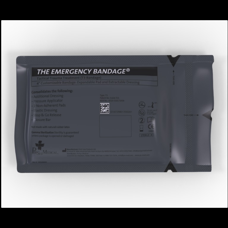 Израильский бандаж PerSys Medical T3 — это профессиональная компрессионная повязка для быстрой остановки кровотечения, которая сочетает в себе функции эластичного бинта, перевязочного пакета, жгута и компрессионной повязки. Используется военными, медиками, спасателями и в условиях оказания первой помощи при боевых или бытовых травмах.