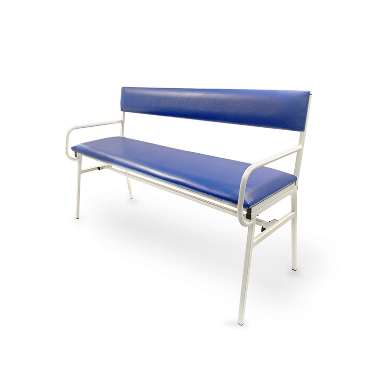 Банкетка МБС-2 со спинкой и поручнями применяется в лечебных и оздоровительных заведениях в кабинетах, коридорах и вестибюлях для размещения пациентов, которые ожидают приема врача.