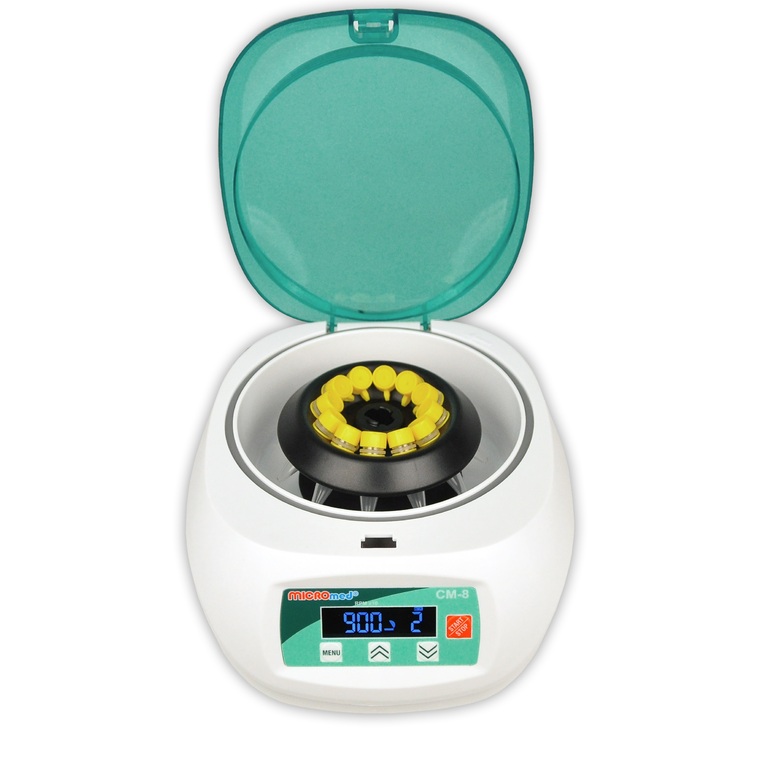 Центрифуга высокоскоростная лабораторная СМ-8 MicroSpin используется в медицинских и научных лабораториях для разделения биологических жидкостей, плотностью до 2 г/см3 на отдельные фракции. Конструкция аппарата сконструирована для работы с пробирками типа Эппендорф (емкость с коническим дном и запирающейся крышкой) вместимостью до 2 мл. Скорость вращения ротора устанавливается в диапазоне 500–12000 об/мин.