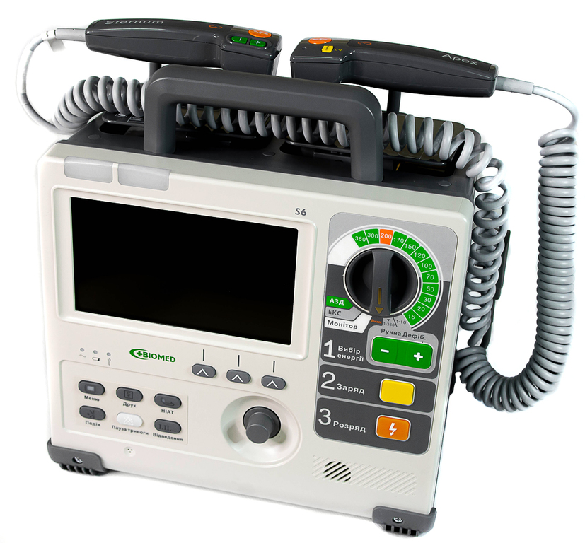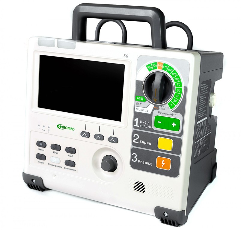 Дефибриллятор-монитор S6 применяется для дефибрилляции в ручном режиме, для дефибрилляции в автоматическом режиме АЗД (AED), внешней кардиостимуляции и мониторинга физиологических показателей жизнедеятельности пациентов (ЭКГ, ЧСС, ЧД (RESP), SpO2, ЧП, CO, НИАД, EtCO2).