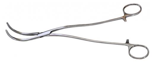 Диссектор по Satinsky с изогнутыми ручками, с кремальерой №4. Хирургический инструмент в виде зажима, предназначенный для тупого разделения тканей при их препаровке и выделении трубчатых органов, а также для временного пережатия кровеносных сосудов, протоков и захвата лигатур при хирургических вмешательствах.