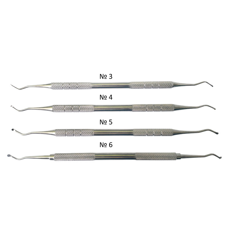 Инструмент применяется для извлечения из кариозной полости зуба пищевых остатков, размягченных слоев дентина, спиленных бором твердых тканей зуба, а также для удаления отложений на зубах и обработки зубодесневых карманов.