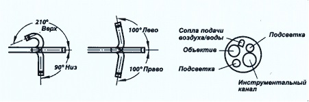 - изгибаемая часть: диапазон угла изгибадистального конца: 210 вверх, 90 вниз, 100 вправо, 100 влево