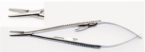 Иглодержатель глазной по Кастровьеджо, прямой. С зубцами и фиксатором. Длина 140 мм. Предназначен для удержания хирургических игл при наложении шва.