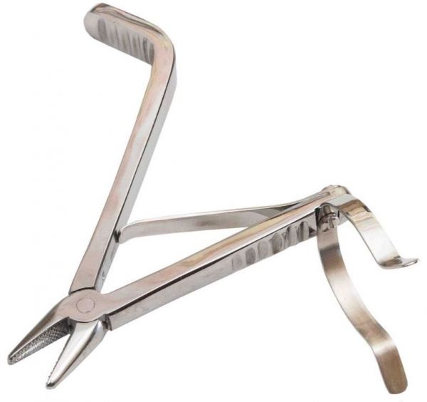 Иглодержатель глазной с фиксатором для пальца. Длина 90 мм, длина рабочей части 10 мм. Инструмент предназначен для удержания и проведения через ткани хирургических игл при наложении шва.