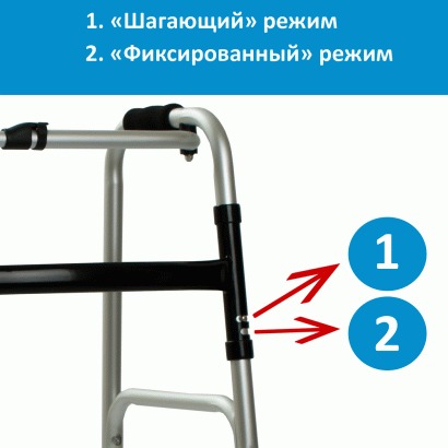 - Конструкция позволяет использовать ходунки в двух режимах: «шагающие» и «фиксированные».