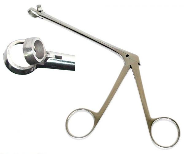 Конхотом с круглым отверстием № 2. Длина 120 мм. Диаметр рабочей части 9 мм. Инструмент предназначен для откусывания плотных тканей при оториноларингологических операциях.