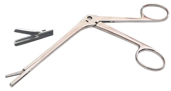 Конхотом с щелевидным отверстием № 1. Длина 190 мм. Длина рабочей части 14 мм, ширина 3 мм. Предназначены для выкусывания фрагментов биологических тканей на цитологическое и гистологическое исследование.
