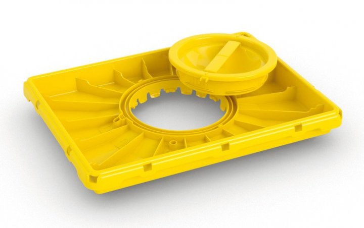 - Крышка DUO. Двухкомпонентная, герметична. Наличие клеевого уплотнения по периметру прямоугольной и круглой части. Круглая часть имеет 2 положения: временное и финальное закрывание.