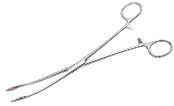 Корнцанг изогнутый для детей, 228 мм. Инструмент предназначен для подачи перевязочного материала, инструментов, введения в рану тампонов, дренажей, извлечения инородных тел, создания тупфера, обработки операционного поля и т.д.
