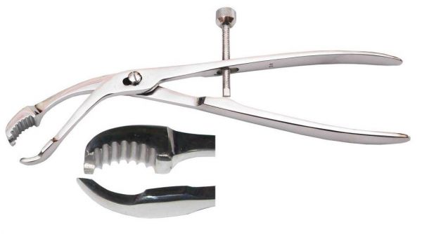 Костодержатель изогнутый (рабочая часть 25 мм). Костодержатель предназначен для удержания костей при остеосинтезе переломов. Длина 260 мм, длина рабочей части 25 мм.