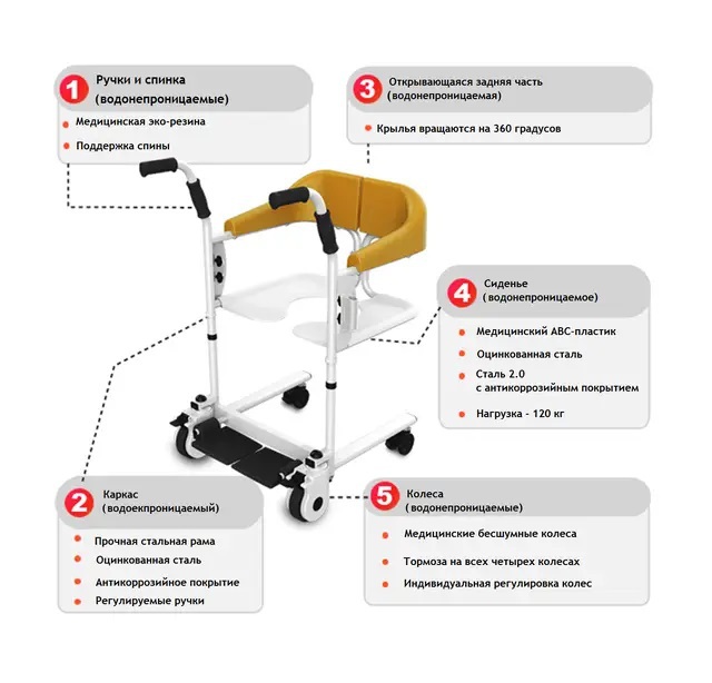 - Материал сиденья: медицинский АВС-пластик