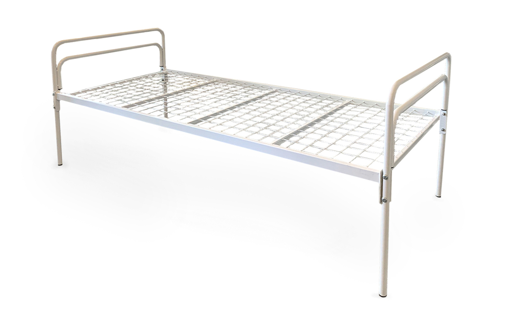 Каркас кровати выполнен из сортовой трубы и окрашен белой порошковой краской, имеющей высокую прочность и износостойкость и стойкой к воздействию дезинфицирующих растворов. Быльца выполнены из гнутой трубы круглого.