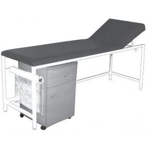 Кушетка оснащена тумбочкой с выдвижными ящиками, а так же держателем для полотенец. Конструкция кушетки не имеет выступающих и острых частей, что обеспечивает предупреждение травм при эксплуатации, обеспечивает легкий доступ медицинского персонала к пациенту.