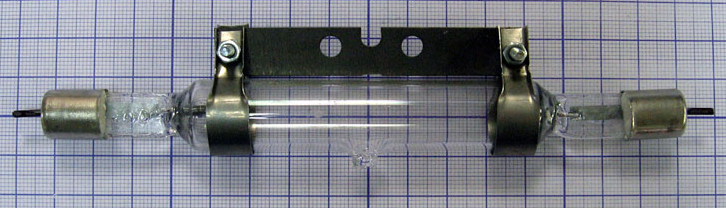 Лампа ДРТ 240 представляет собой трубку-колбу из кварцевого стекла, по концам которой впаяны электродные узлы. Колба лампы наполнена дозированным количеством аргона и ртути, в парах которой и происходит дуговой разряд.