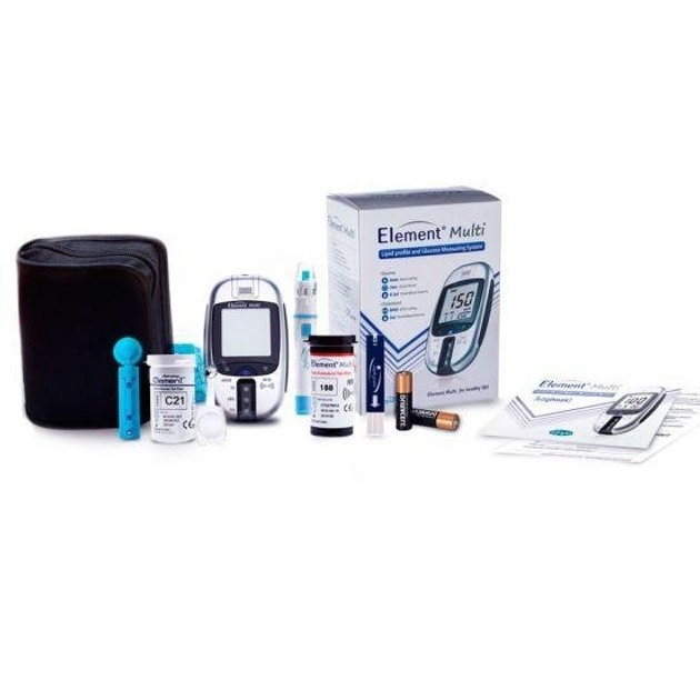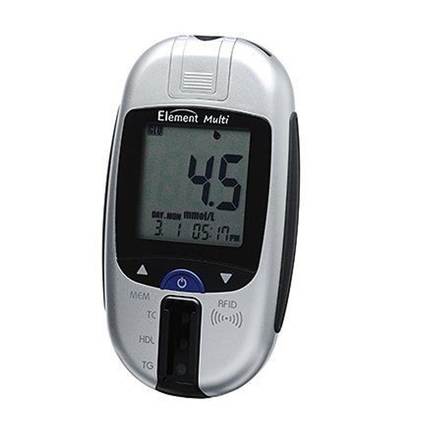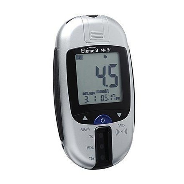 Element™ Multi используется для контроля уровня глюкозы, общего холестерина, триглицеридов (ТГ), липопротеинов высокой (ЛПВП) и низкой плотности (ЛПНП).