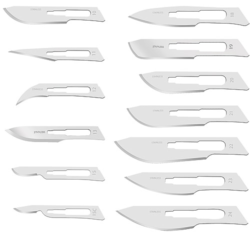 Лезвия №10-15С соответствует ручке №3, лезвия №18-24 соответствует ручке №4.