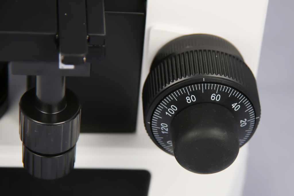 - Фокусування: коаксиальне грубе і точне фокусування, діапазон 24мм. Точність 2 мкм. Поставляється з регульованим упором стійки для запобігання пошкодження зразка і об’єктивів