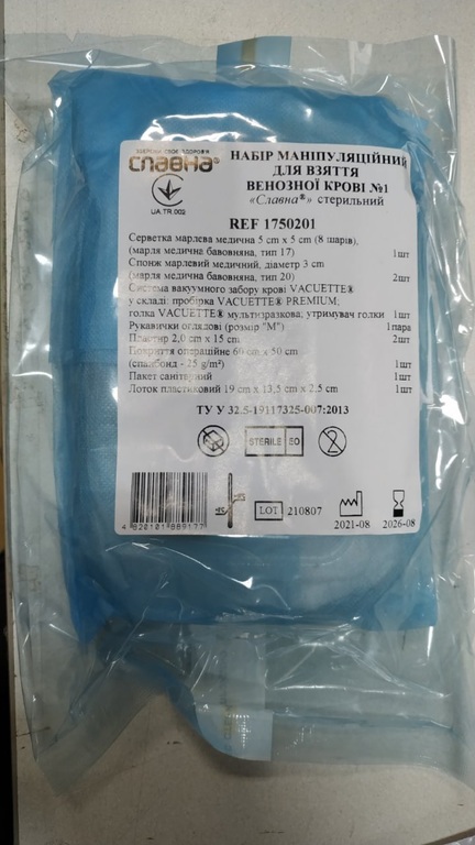 Набор манипуляционный для взятия венозной крови №1 "Славна" , стерильный