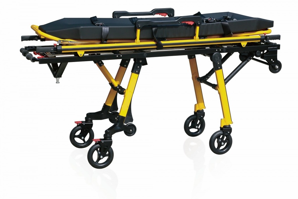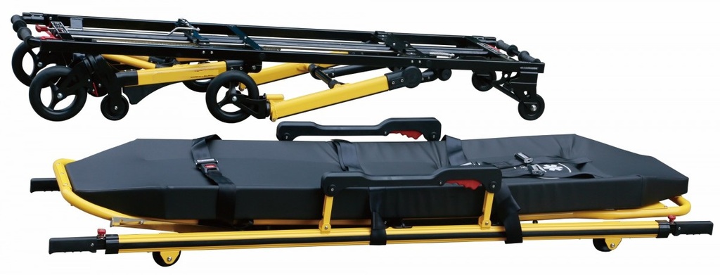 Верхняя часть носилок - снимается, имеет две пары колес и дополнительные ручки для переноски, секция для головы может изменять угол наклона. С помощью рычагов под секциями для головы и для ног можно регулировать высоту кровати (семь положений), что позволяет достичь необходимой для транспортировки высоты.