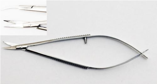 Ножницы для роговицы по Кастровьеджо, с заостренным концом, изогнутые. Длина 100 мм.