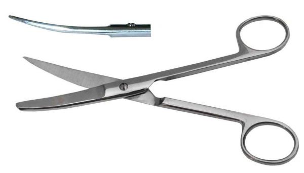 Ножницы с одним острым концом, изогнутые, 170 мм. Для разрезания мягких тканей, главным образом тогда, когда для разреза, вначале надо проколоть ткань.