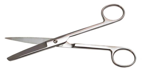 Ножницы с одним острым концом, прямые, 170 мм. Для разрезания мягких тканей, главным образом тогда, когда для разреза, вначале надо проколоть ткань.