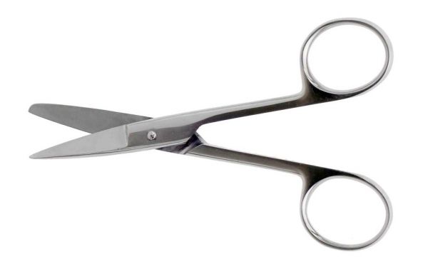 Ножницы с одним острым концом, прямые, детские, 125 мм. Хирургические ножницы. Для разрезания мягких тканей, главным образом тогда, когда для разреза вначале надо проколоть ткань.