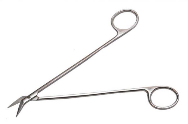 Ножницы сосудистые, горизонтально-изогнутые, 160 мм. Инструмент предназначен для сердечно-сосудистой хирургии.