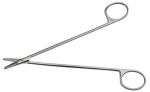 Ножницы сосудистые, тупоконечные, вертикально изогнутые 250 мм. Инструмент предназначен для сердечно-сосудистой хирургии.