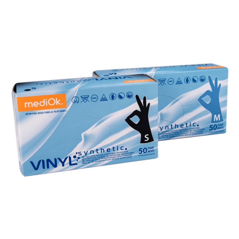 Витриловые (винил синтетик) перчатки * перчатки срок годности до 11,2025 РАЗМЕР S— это прекрасный вариант средств индивидуальной защиты, который не содержит латексных протеинов, ведь сделан из винила (100% синтетический материал).