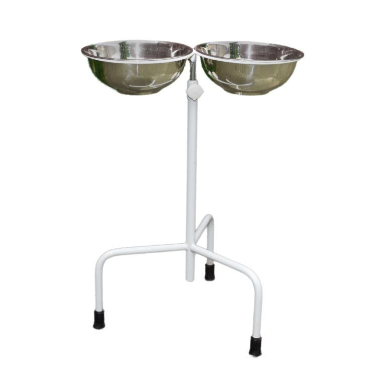 Подставка под два таза ПТ-2 предназначена для размещения и использования одновременно двух нержавеющих тазов в операционных и процедурных кабинетах во время проведения операций. Каркас подставки изготовлен из металлического профиля и окрашен белой порошковой краской. В верхней части конструкции установлена подставка на две корзины под тазики, которые можно регулировать по высоте. Каркас установлен на три резиновые опоры. Подставка комплектуется двумя нержавеющими тазами диаметром 300 мм.