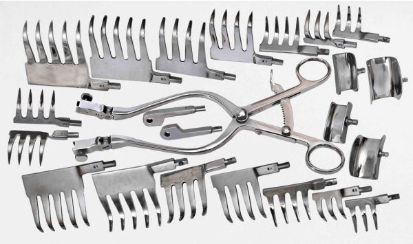Ранорасширитель Егорова-Фрейдина. Сгибающаяся рабочая часть. Длина общая 330 мм, расход зеркал 180 мм, 10 разных сменных насадок.