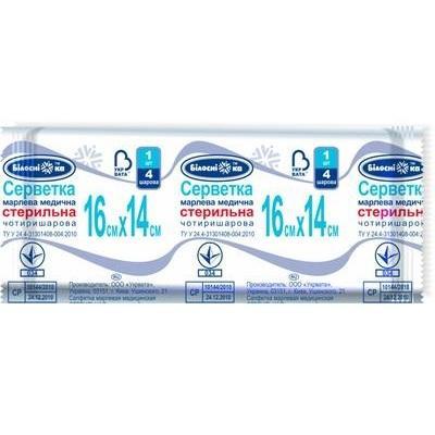 Салфетки марлевые стерильные двухслойные 16х14см № 5 ТМ "Белоснежка"