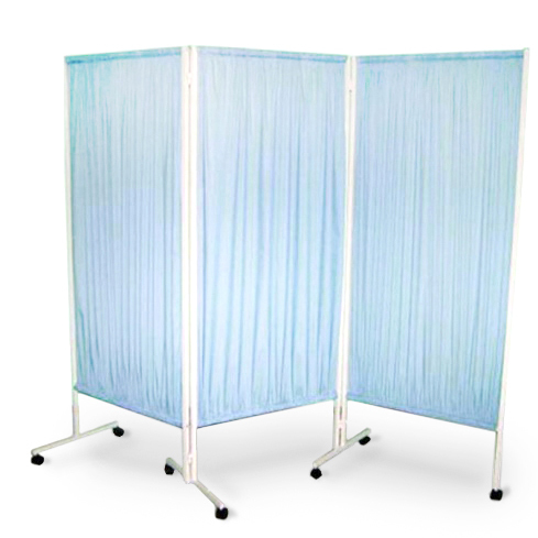 Каркас ширмы изготовлен из металлического профиля с полимерно-порошковым покрытием, стойким к дезинфекции и механическим повреждениям. Полотно легко снимается с каркаса для стирки и дезинфекции.