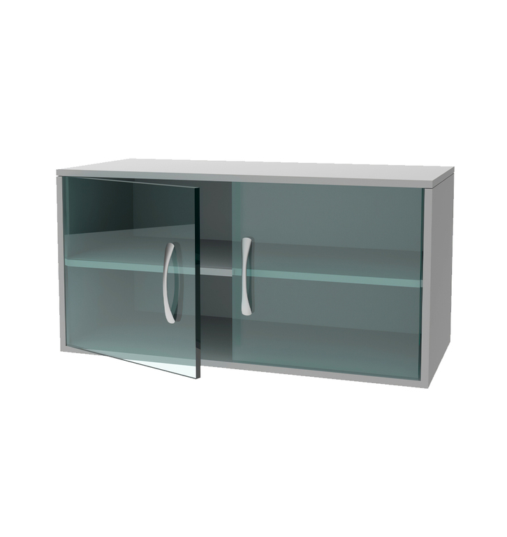 Корпус изготавливается из ламинированного ДСП, торцы корпуса обработаны ударопрочной кромкой из ABS – пластика толщиной 0,6 мм. Шкаф оснащен прозрачными стеклянными дверцами с хромированными ручками. Вместительное отделение со съемной полкой позволяет с удобством разместить медицинские приборы и предметы.