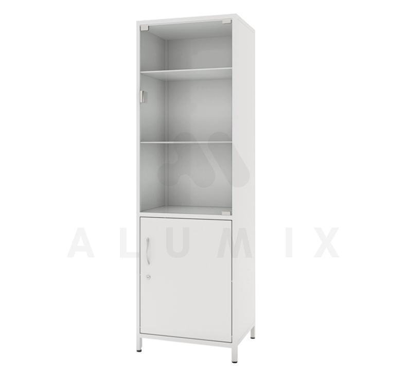 - Эстетический дизайн: Шкаф ШМ-М поражает современным и элегантным дизайном. Стеклянные двери верхней части придают легкость и изящество, делая ее отличным выбором для любого медицинского кабинета или лаборатории.