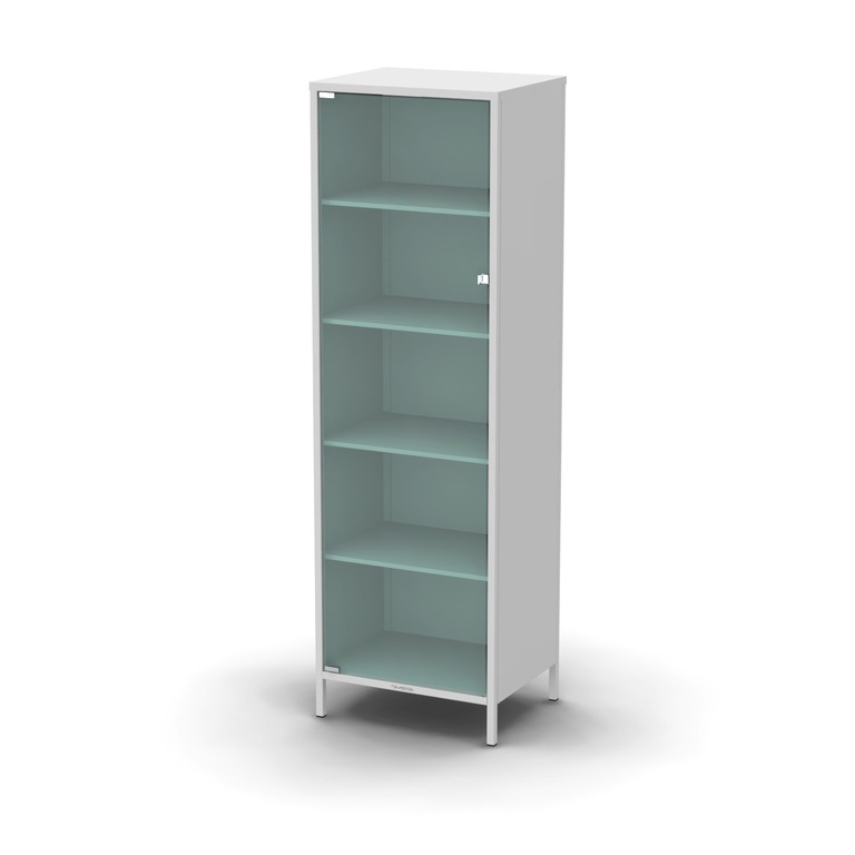 Шкаф ШМ-1 медицинский одностворчатый с дверкой из стекла предназначен для размещения инструментов, материалов и медикаментов в смотровых, перевязочных и операционных залов больниц и клиник, а также других учреждений системы здравоохранения.