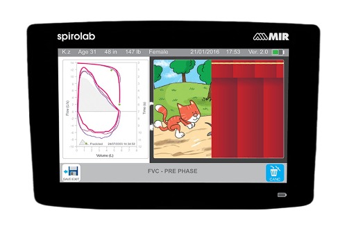 Spirolab — полноценный настольный спирометр с модулем оксиметрии. Оснащён 7-дюймовым цветным сенсорным экраном и встроенным термопринтером, что позволяет проводить быстрые и расширенные исследования без подключения к компьютеру.