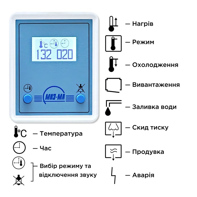 - стерилизационная камера и загрузочные коробки изготовлены из полированной, жаропрочной, нержавеющей стали;