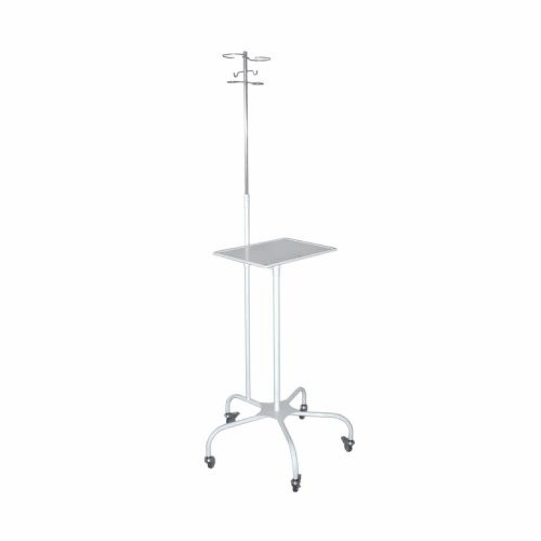 Стойка для медсестры СТМ-1 практичная, удобная и устойчивая конструкция, которая получила положительные отзывы медицинского персонала. Конструкция состоит из пятилучевой основы на колесах с тормозной системой, на которой установлено две стойки - одна со штативом, который регулируется по высоте, на другой установлено полку. Стойка выступает в роли штатива для внутривенных вливаний. Полочку с бортиками успешно можно использовать для размещения вспомогательного оборудования.