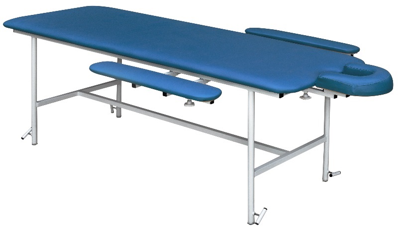 Стол массажный односекционный М-1 для размещения пациентов при выполнении лечебного и других видов массажа в лечебных и лечебно-профилактических учреждениях. Стол изготовлен из металлического профиля и окрашен белой порошковой эмалью. Ложе стола имеет бесшовную обивку медицинским кожзаменителем. Цвет обивки выбирается по желанию заказчика. Стол регулируется по высоте, имеет регулируемые подставки под руки и удобный подвижный подголовник с отверстием для лица пациента. Конструкция кресла не имеет выступающих и острых частей, что обеспечивает предупреждение травм при эксплуатации и легкий доступ медицинского персонала к пациенту.