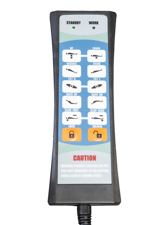 - Регулировка высоты стола, наклонов ложе в положение тренделенбург и обратный тренделенбург, боковых наклонов ложе, наклонов секции спинной, горизонтального перемещения ложе происходит с помощью электрического привода, который обеспечивает гибкую и точную настройку положения, характеризуется низким уровнем шума и не требует контроля за уровнем масла.