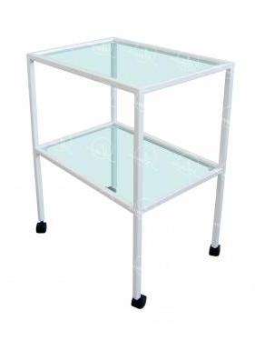Столик инструментальный СТ-И-2С-К - предназначен для размещения расходных материалов, медикаментов и инструментов. Столик состоит из металлического каркаса с полимерным покрытием, установленного на колёсики с тормозами. На каркасе располагаются две стеклянные полки.