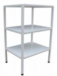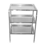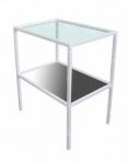 Столик-накопитель СТ-Н-Н - предназначен для размещения расходных материалов, медикаментов и инструментов. Столик состоит из металлического каркаса с полимерным покрытием и расположенных на нём трёх полок, изготовленных из высококачественной полированной нержавеющей стали.