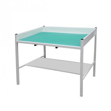 Столик пеленальный СП-П с полкой - предназначен для размещения новорождённого во время осмотров, пеленаний и проведения других процедур. Область применения – перинатальные центры, родильные дома, неонатологические отделения клиник и больниц. Столик пеленальный состоит из металлического каркаса с расположенной на высоте 340 мм полкой размером 950х420 мм, столешницы из полистирола и эластичного матрасика в медицинской клеенке.