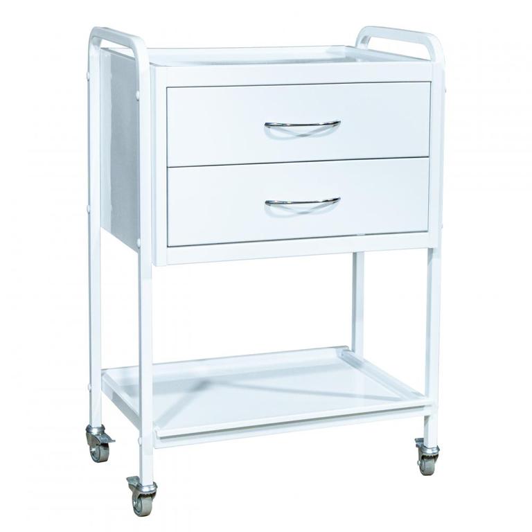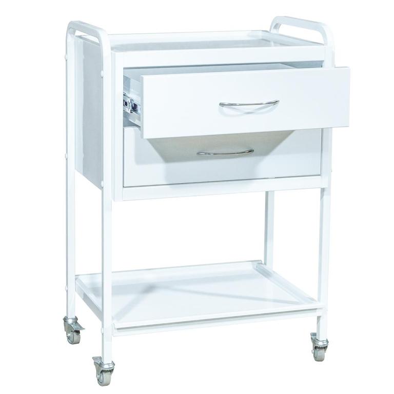 Столик манипуляционный СМ-3-2 Евро предназначен для размещения инструментов и материалов на нем во время различных манипуляций. Столик состоит из металлического каркаса, на который установлены два ящика и две металлические полки, для размещения инструмента. Столик окрашен белой антибактериальной порошковой краской, легко обрабатываемой растворами. Ящики, под заказ, могут окрашиваться в разные цвета. Для удобного перемещения столик оснащен четырьмя колесами (два из которых с тормозами).