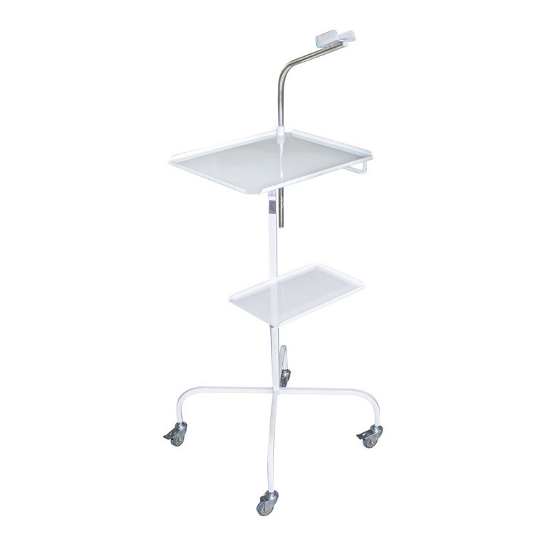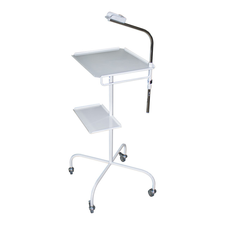Стойка для кардиографа СТК-1 имеет специально разработанную конструкцию, для эргономичного размещения прибора с датчиками. Подойдет для любой модели кардиографа, независимо от производителя. Конструктивно состоит из основы на колесах и опорной стойки из профильной трубы, металлической полки с бортиками, оборудованной держателем для зажимов и выдвижным штативом с держателем грудных электродов, дополнительной полочкой из метала на опорной стойке для аксессуаров. Все металлические части стойки окрашены порошковой краской.