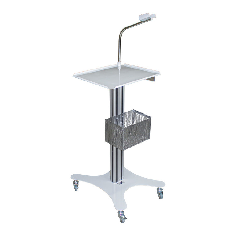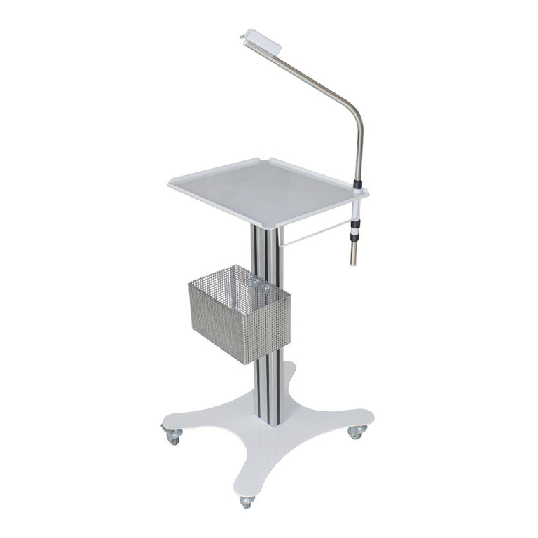 Стойка для кардиографа СТК-2 имеет специально разработанную конструкцию, для эргономичного размещения прибора с датчиками. Подойдет для любой модели кардиографа, независимо от производителя. Устойчивая конструкция, состоящая из основы с цельнолистового метала, окрашенного порошковой краской белого цвета, установленной на колесах с тормозами, опорной стойки из алюминиевого профиля, металлической полки с бортиками, оборудованной держателем для зажимов и штативом з держателем грудных электродов, а также корзины из перфорированного метала для расходных материалов.